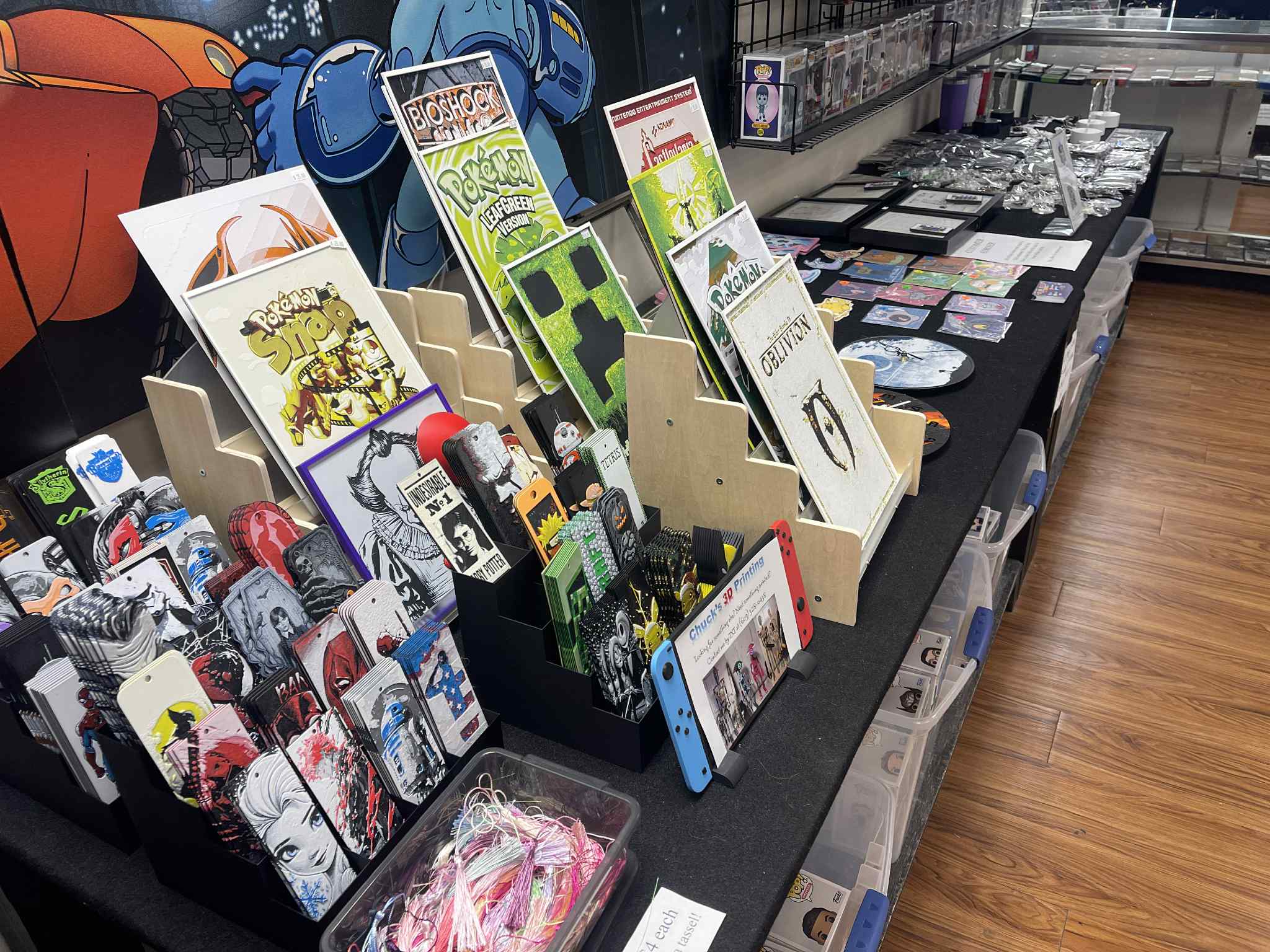 NEW IN STORE! We feature the work of various local artists, designers, craftsmen, authors, and creatives alike. We include items ranging from plush, wood-burned art, highly detailed 3D prints, granite slates, and even children's books, all from your favorite video game and comic book series!
